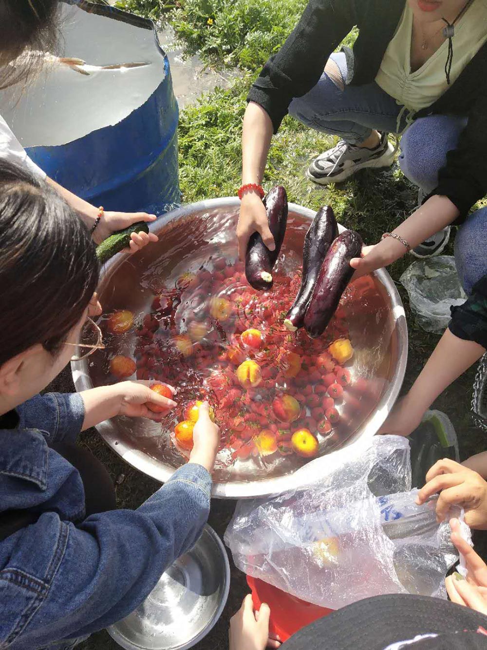 游玩過后我們開始了備餐,女士們去洗菜和水果,繽紛的色彩讓我們忍不住拍了照。