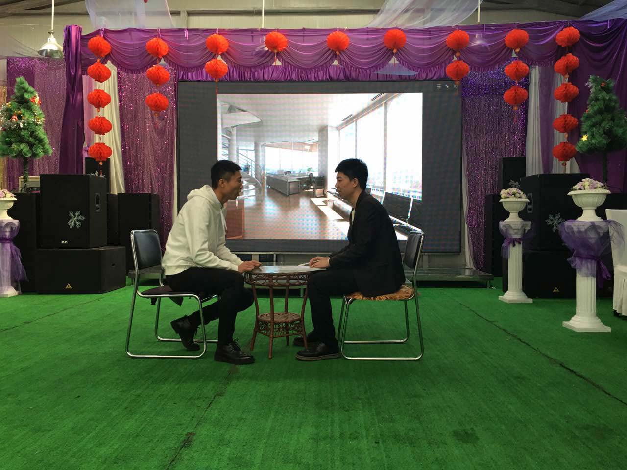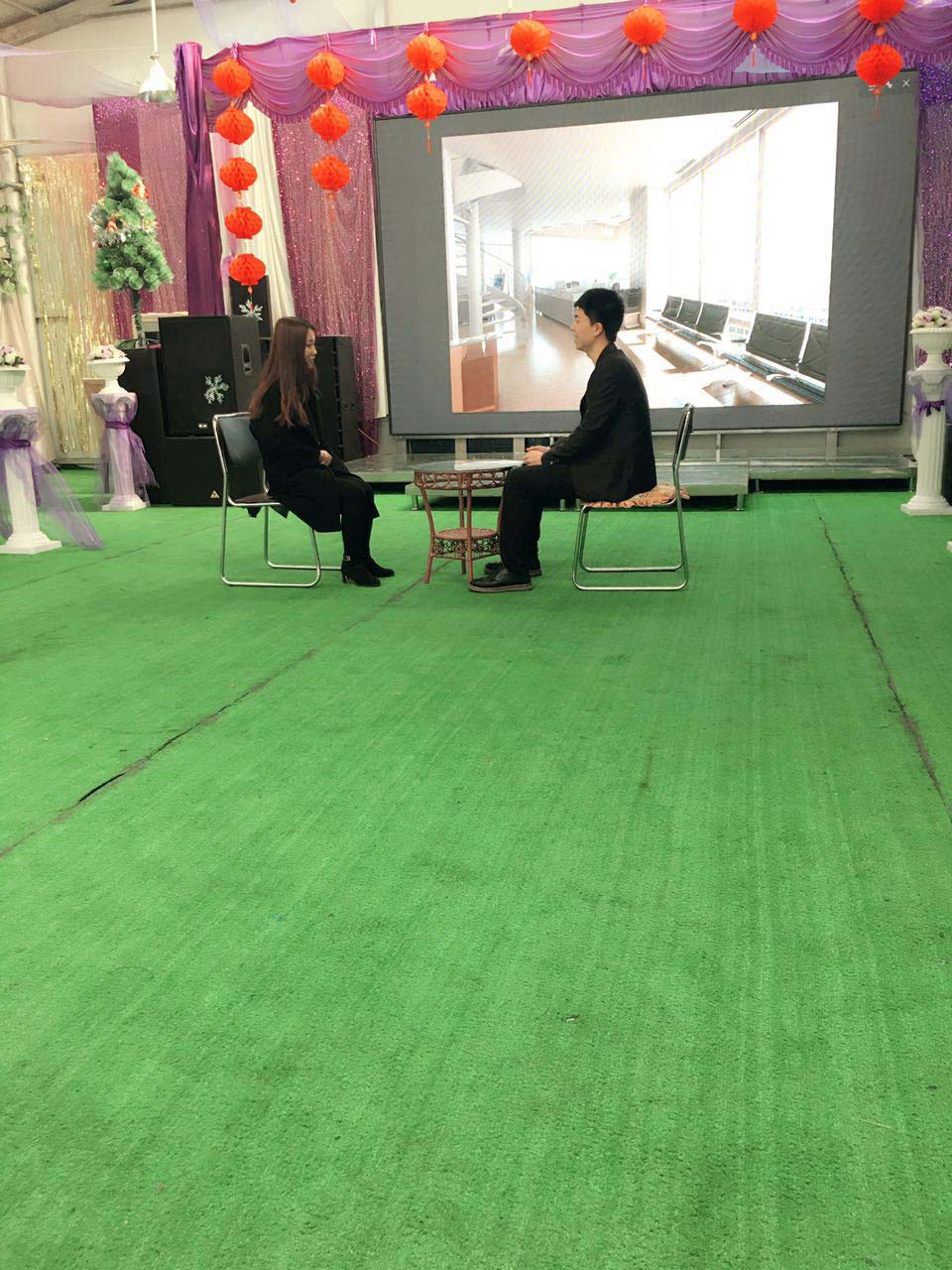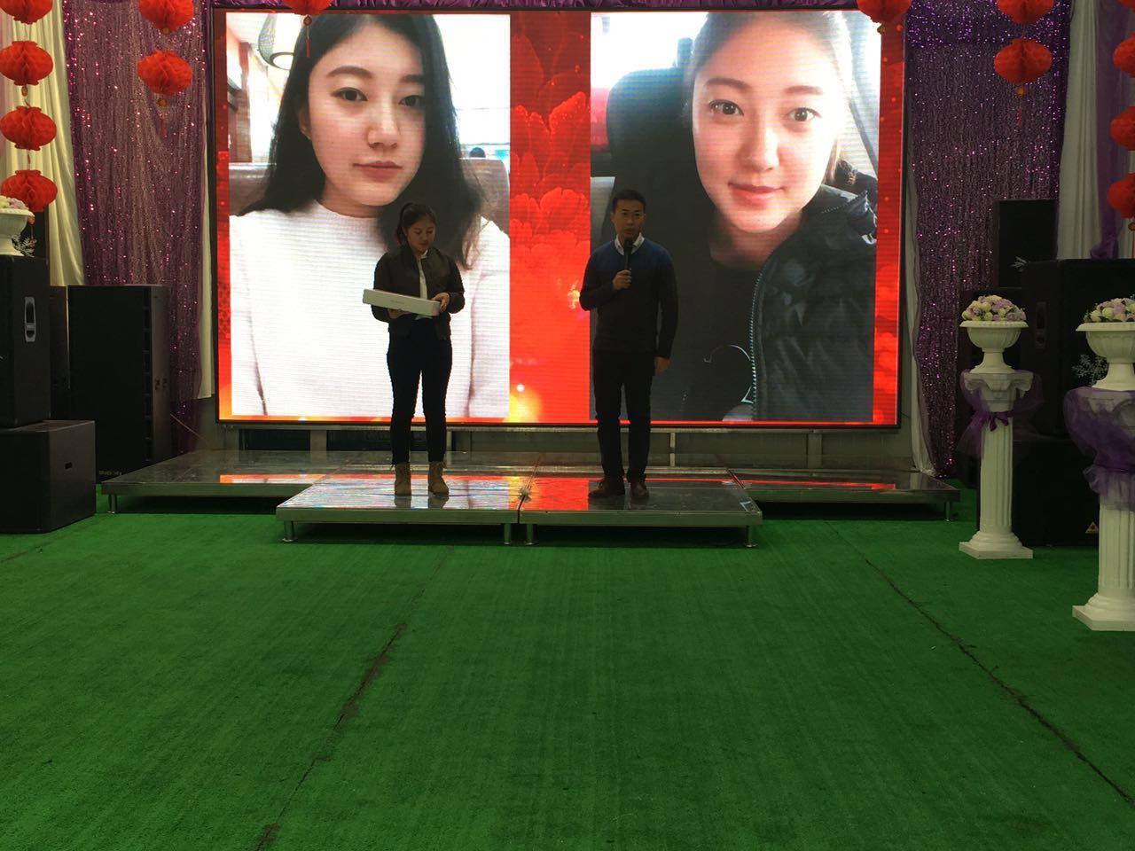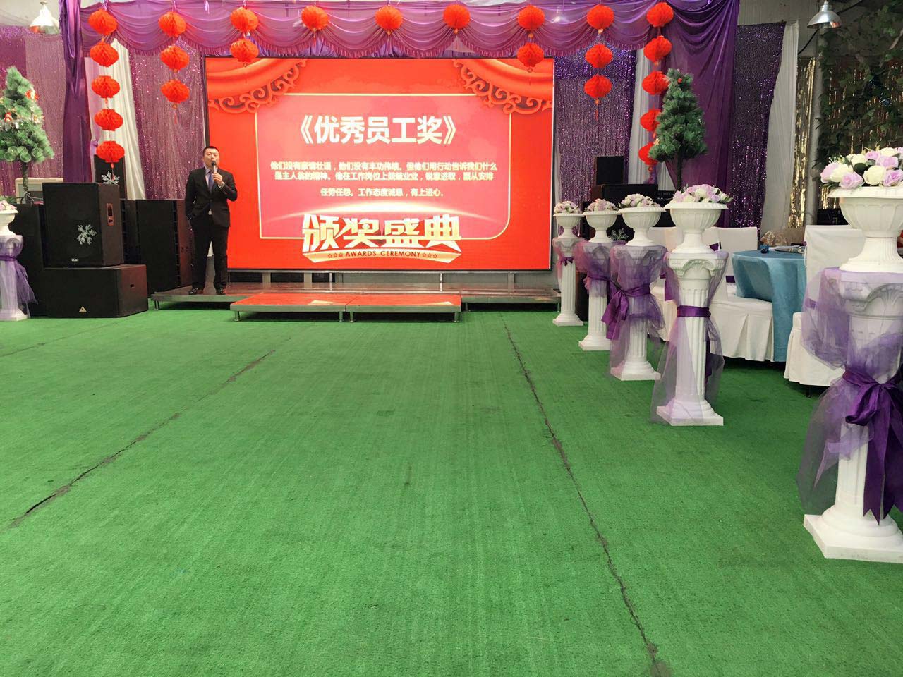 我們一行小伙伴相約來到鴻盛工業園區,伴隨著倒計時在屏幕上的閃現,在11點半的時候終于迎來了公司年會的正式開始,兩位主持人衣著盛裝走上了華麗的舞臺,致開場賀詞,并由公司苗總做新年致辭。